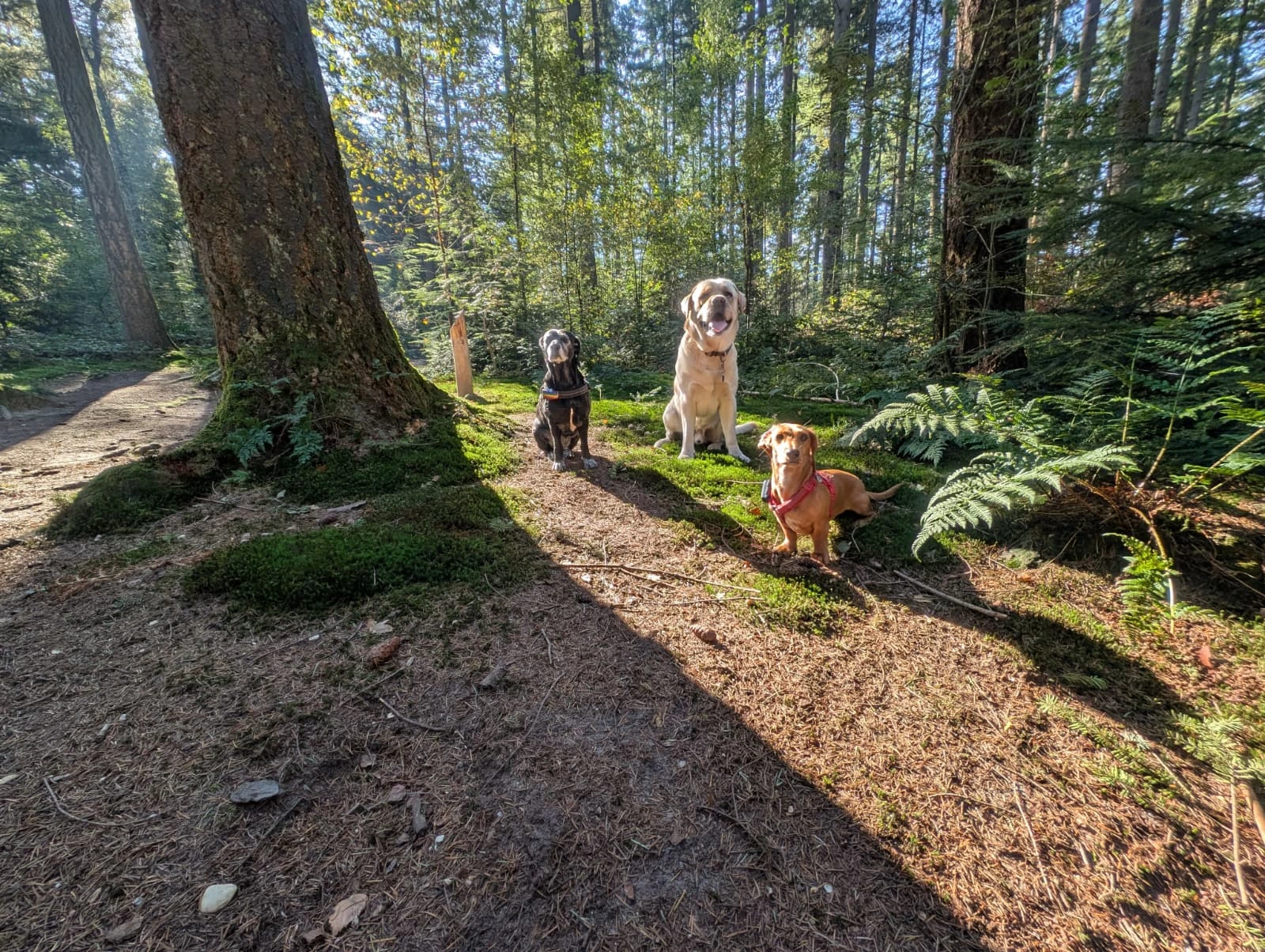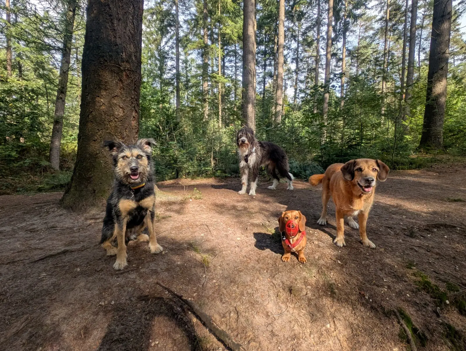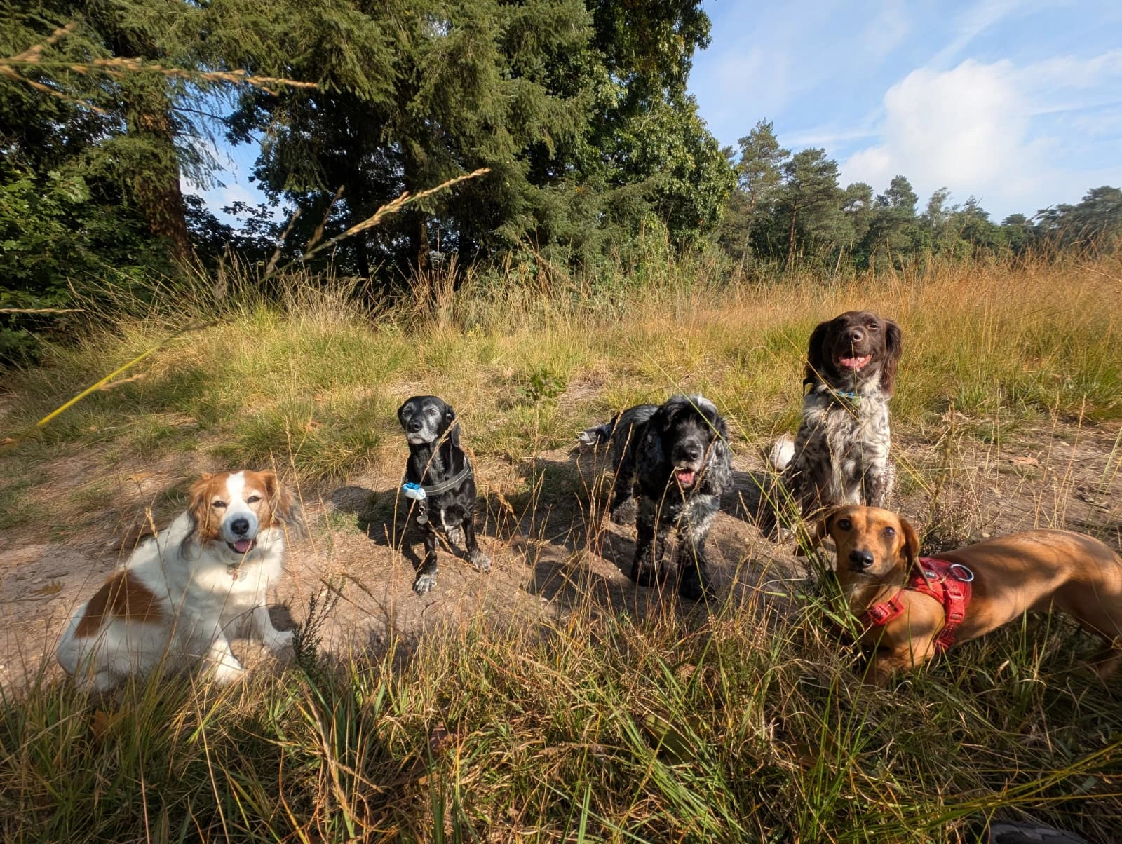 De wandelingen gaan in principe altijd door — regen of wind is voor honden meestal geen probleem! Alleen bij extreem weer (zoals onweer, storm of ijzel) zoeken we samen een veilige oplossing.