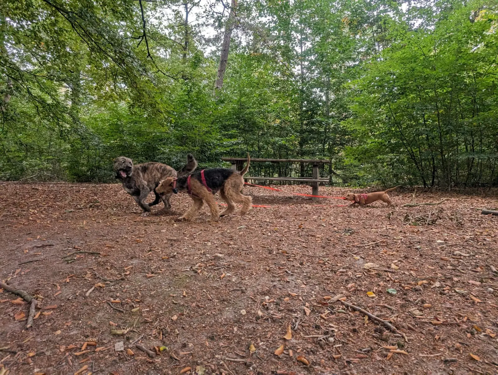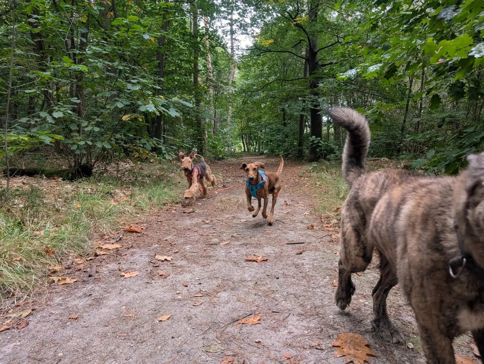 Nee hoor. Honden blijven aan de lijn tenzij we op een veilige plek zijn én jij toestemming hebt gegeven. De veiligheid van jouw hond staat altijd voorop, daarom bouwen we het loslopen ook rustig op. Ik heb daarom ook een aantal gps-trackers die ik de honden om kan doen.